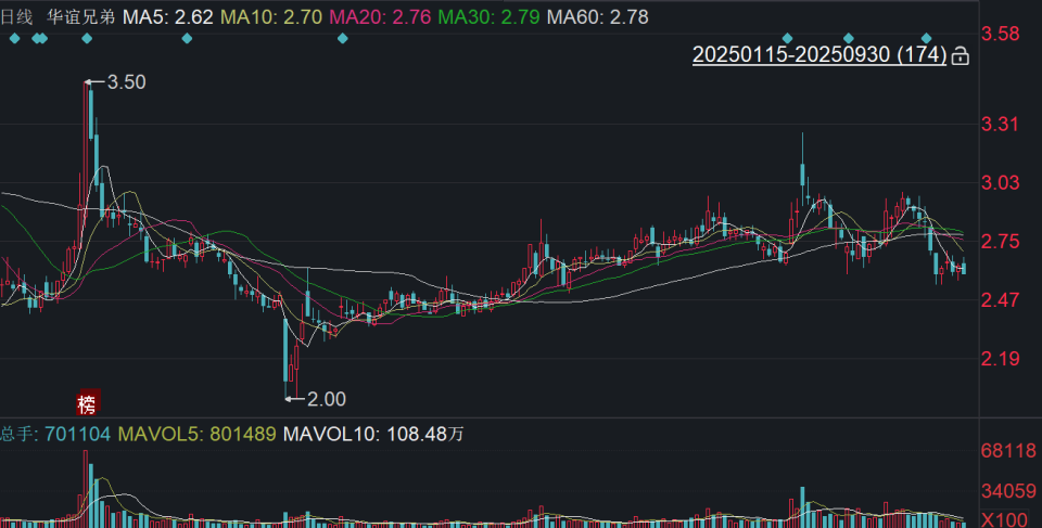 二级市场上,截至9月30日收盘,华谊兄弟下跌1.52%报2.59元/股,最新市值71.86亿元,今年来公司股价近乎原地踏步。