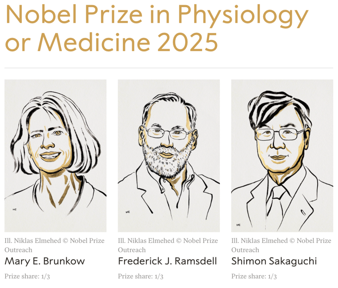 北京时间 10 月 6 日 17 时 30 分左右,2025 年诺贝尔生理学或医学奖结果正式公布: