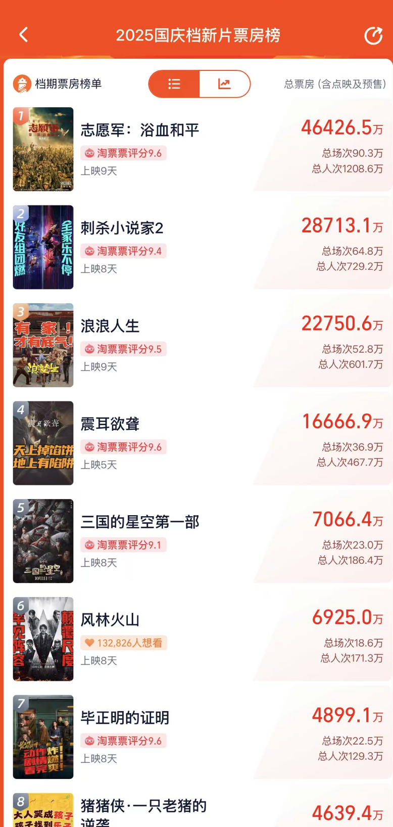截至发稿,2025国庆档期总人次为4743万、档期总场次 363.8万,刷新了中国影史国庆档场次纪录。