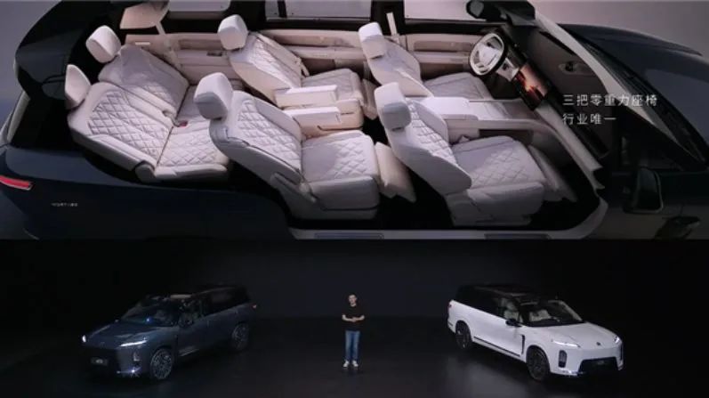 此外,李斌介绍,这款车六座版是行业唯一配备了三把零重力座椅的SUV,且可同时开启。