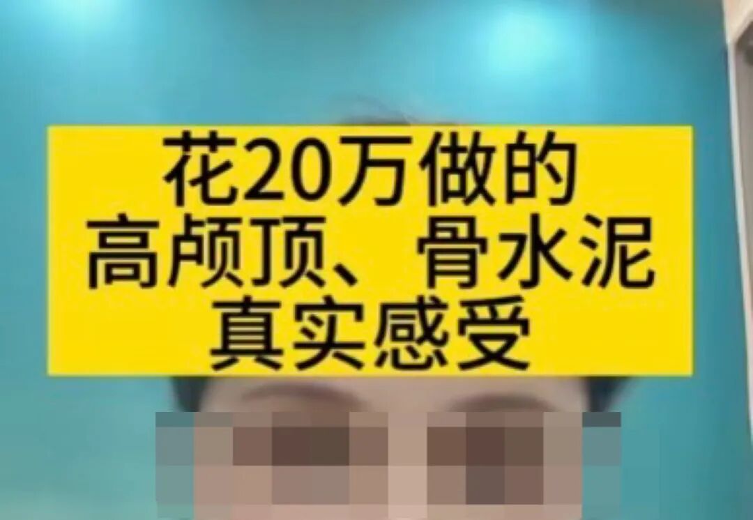 还有一位求美者在社交媒体上发布视频表示,自己在 20 年前第一次接受骨水泥填充后头部出现了明显的畸形,此后又反复填充修复了 2 次结果都不满意,前后花了 20 万,但填充后头顶经常会有很强的异物感,经常偏头痛、脱发,这些 TA 都经历过。