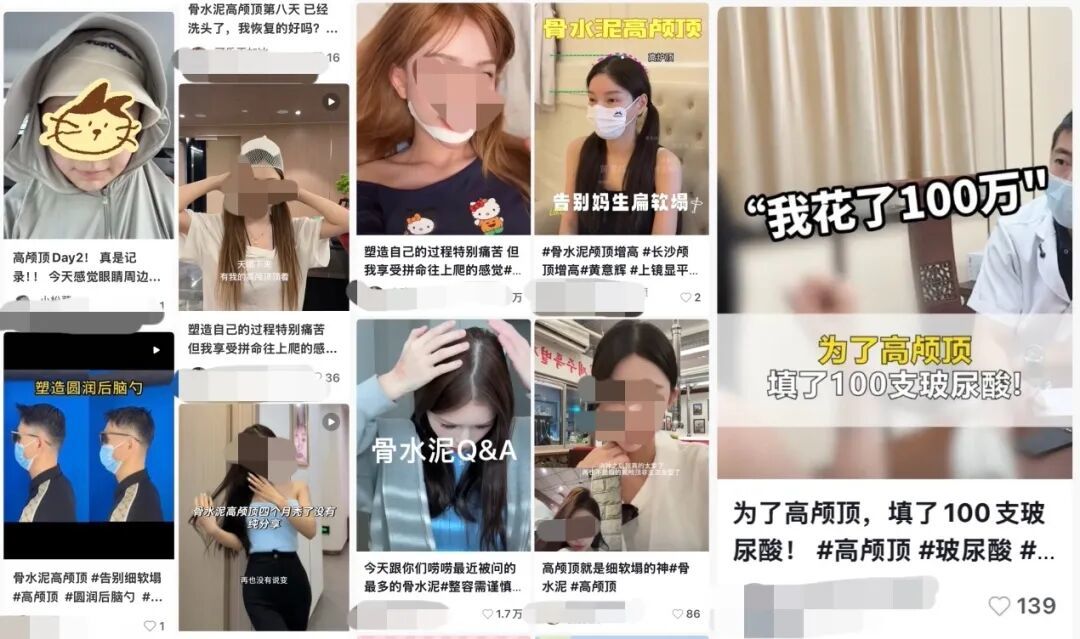 更早些时候,还有一位博主不惜花 20 万高价,前后 3 次将骨水泥填入头皮,只为获得一个圆润饱满的高颅顶。