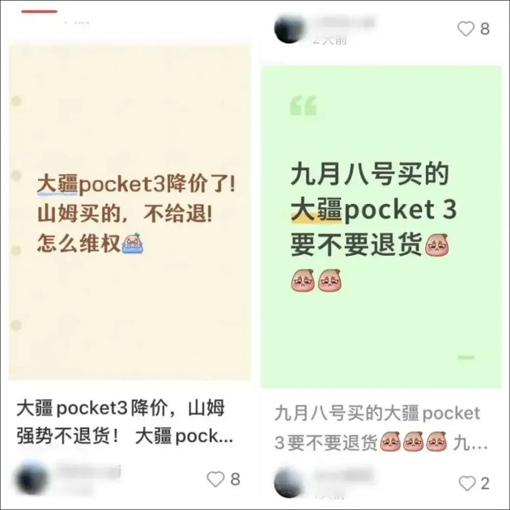 随着降价消息传出,不少刚购买大疆产品的消费者沪爷在社交媒体和小红书等平台上组织起来,要求退差价或退货退款。