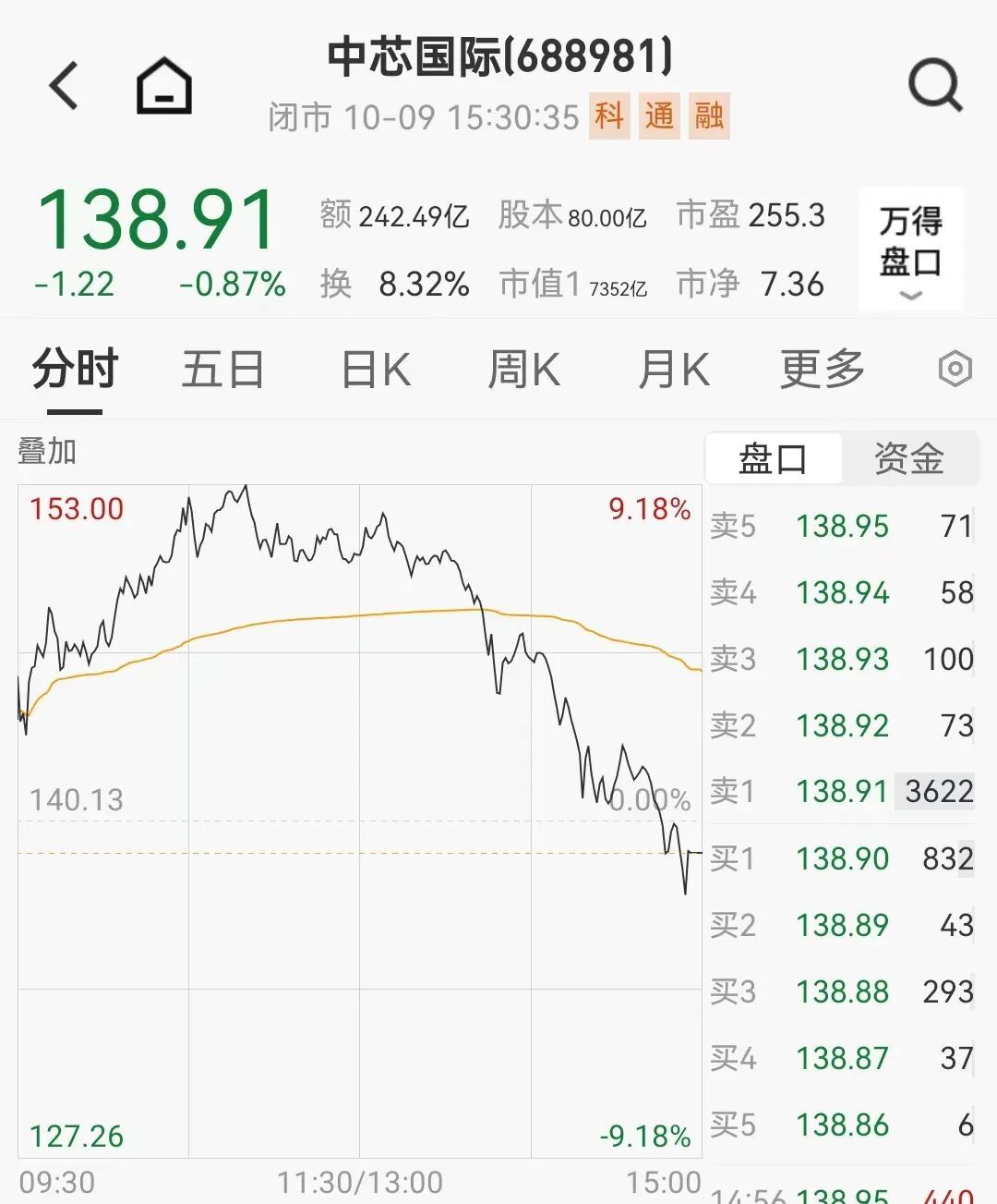 半导体板块为何突然跳水?市场传闻称,近日交易所要求,静态市盈率在300倍以上或者为负数的A股股票,折算率为0%。此外,有投资者表示,今日收到东方财富证券短信通知,自10月9日起,信用账户持有的中芯国际(688981)的折算率由0.70调整为0.00,佰维存储(688525)的折算率由0.50调整为0.00。