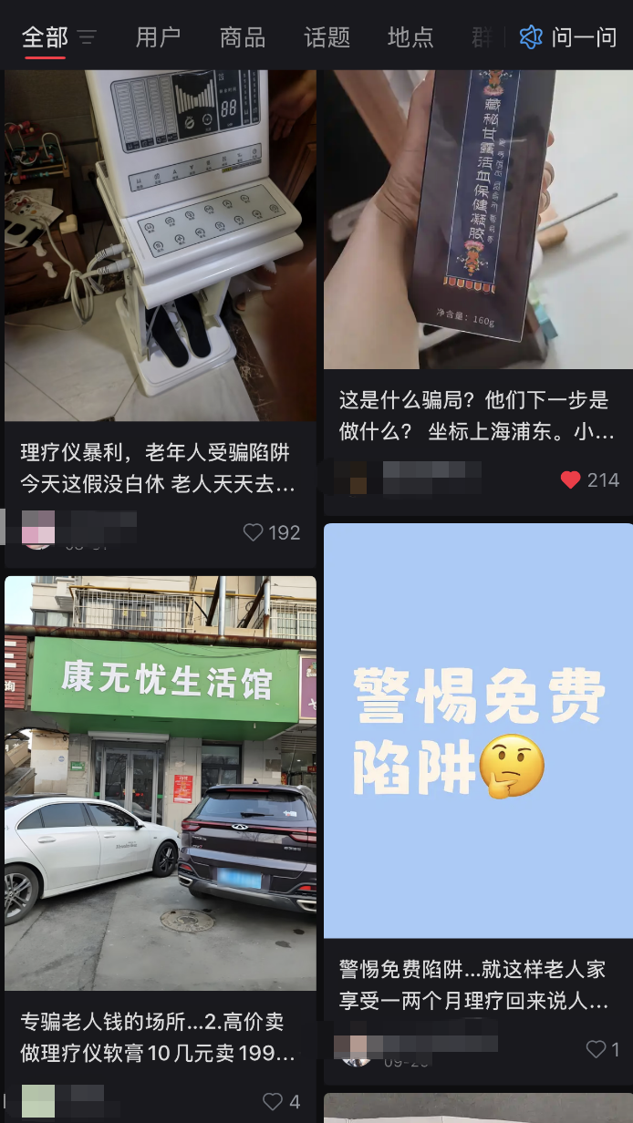 这类养生馆已形成标准化运营模式,从获客到成交的每个环节都经过设计,精准切中老人的情感需求。社交媒体上,不少老人家属都曾曝光过类似的案例。