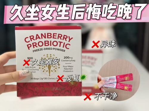 针对女性私密问题的困扰,卿面深入研究女性在不同生理阶段,如生理期、孕期、产后、更年期等,身体对营养和健康的需求,最终推出了一款更全面、更温和、更轻松、更具预防性的口服类优质产品——卿面蔓越莓益生菌冻干粉。