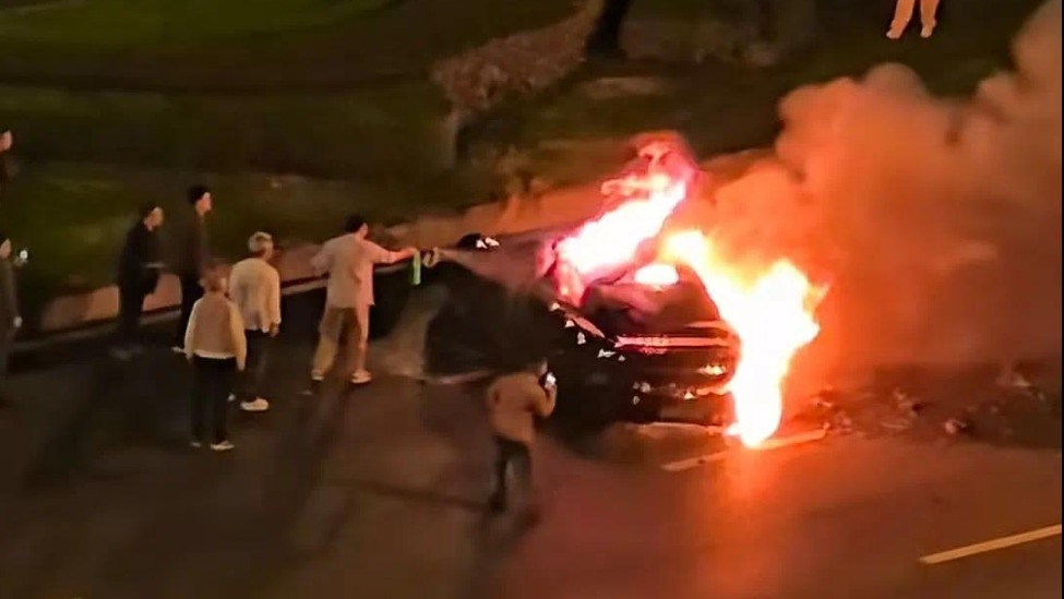 小米SU7碰撞后起火,多名路人救援打不开车门