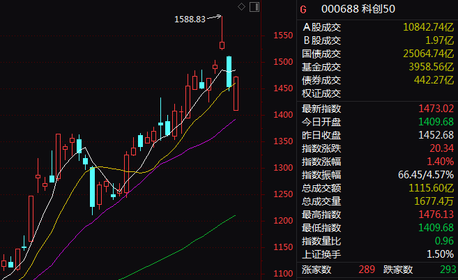 今日(10月13日),受外围市场巨震影响, A股大幅低开,科技股表现出较强韧性,科创50盘初直线拉升,不到2分钟时间就率先翻红,上证指数、沪深300、上证50等也仅以微跌报收,市场成交小幅萎缩至2.37万亿元。
