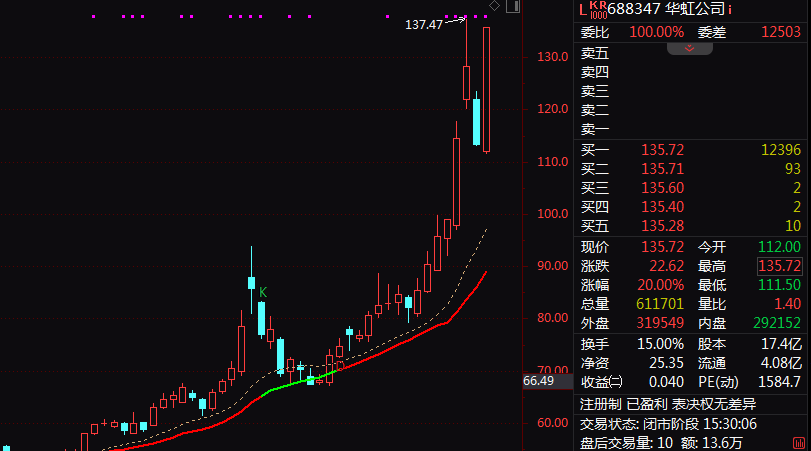芯片概念股午后走强,板块指数翻红,板块内个股掀涨停潮,同惠电子30%涨停,华虹公司(688347)20%涨停,成交额超70亿元,利和兴、路维光电等多股午后20%涨停,沪硅产业、旭光电子、有研新材等近30股亦涨停或涨超10%。