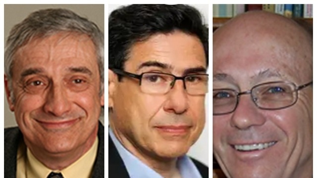 乔尔·莫基尔、菲利普·阿吉翁和彼得·豪伊特(从左至右)。