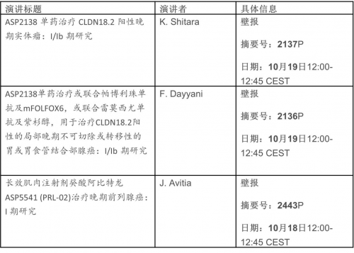 安斯泰来在ESMO 2025大会上的亮点展示包括: