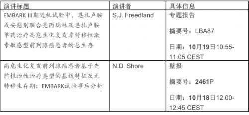 前列腺癌领域的研究成果,重点为恩扎卢胺与亮丙瑞林联合治疗和单药治疗方案在高风险生化复发非转移性激素敏感性前列腺癌患者中的最终整体生存数据。