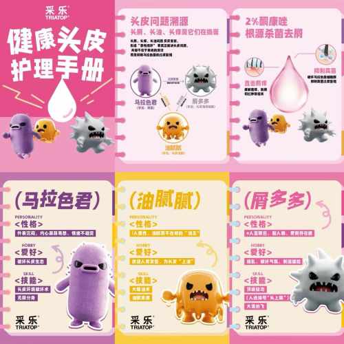 “原来头屑不是‘脏’,是它在捣乱!”采乐这次带来的三只小怪物,每只都藏着专属的健康使命,用拟人化故事讲清头皮护理的关键逻辑: