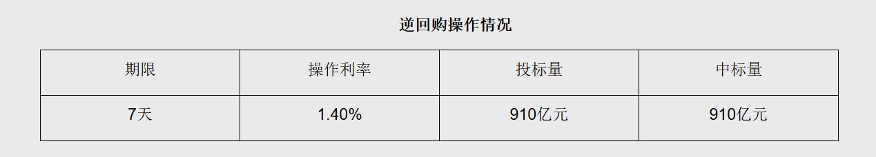 同日,央行发布公告称,2025年10月14日中国人民银行以固定利率、数量招标方式开展了910亿元7天期逆回购操作。具体情况如下: