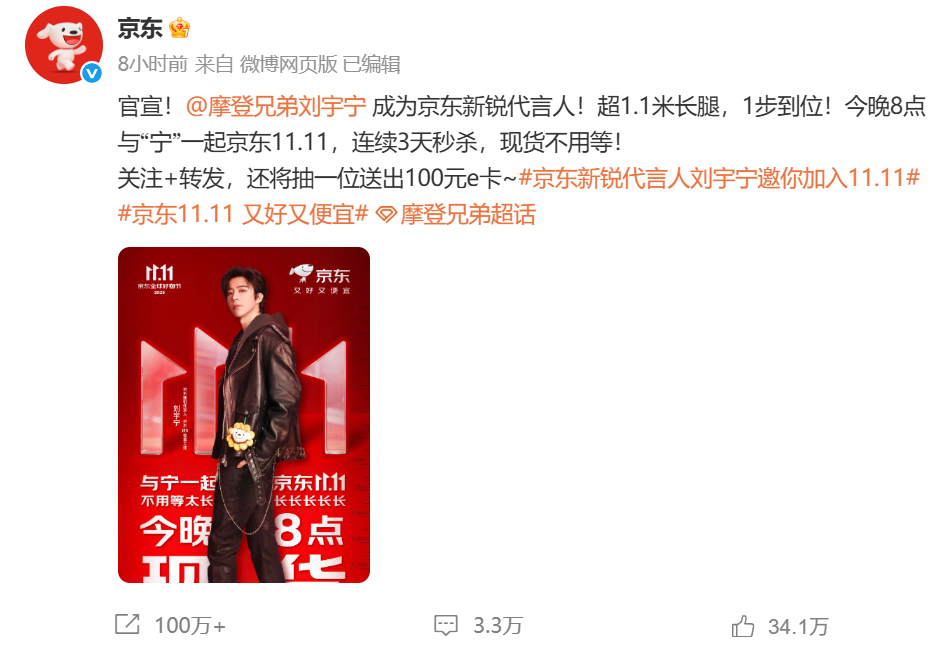 除了推出新车外,10月14日,京东官宣刘宇宁成为京东新锐代言人,引发高度关注。刘宇宁为中国内地流行乐男歌手、影视演员,摩登兄弟乐队主唱。