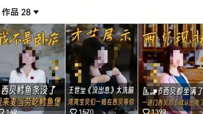 首先是其于10月11日发布的一条探店西贝的视频中,“销魂姐”一边摇头晃脑,双手一边在耳边“比耶”。同时嘴里哼唱着“谢谢你们把西贝价格打下来”。