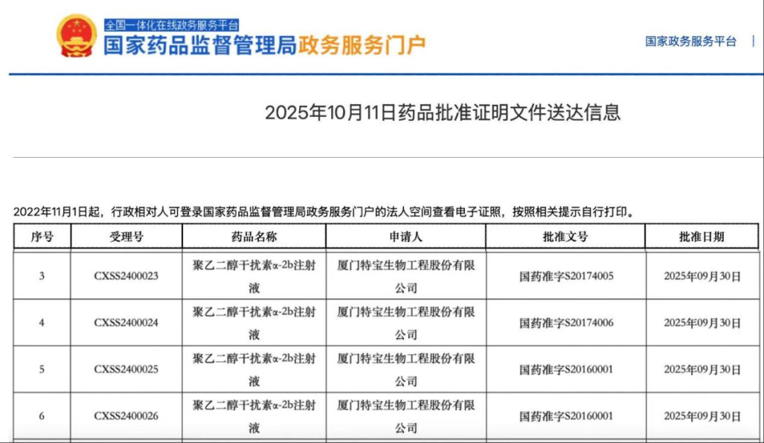 图 1 PegIFNα-2b 注射液新适应症获批截图