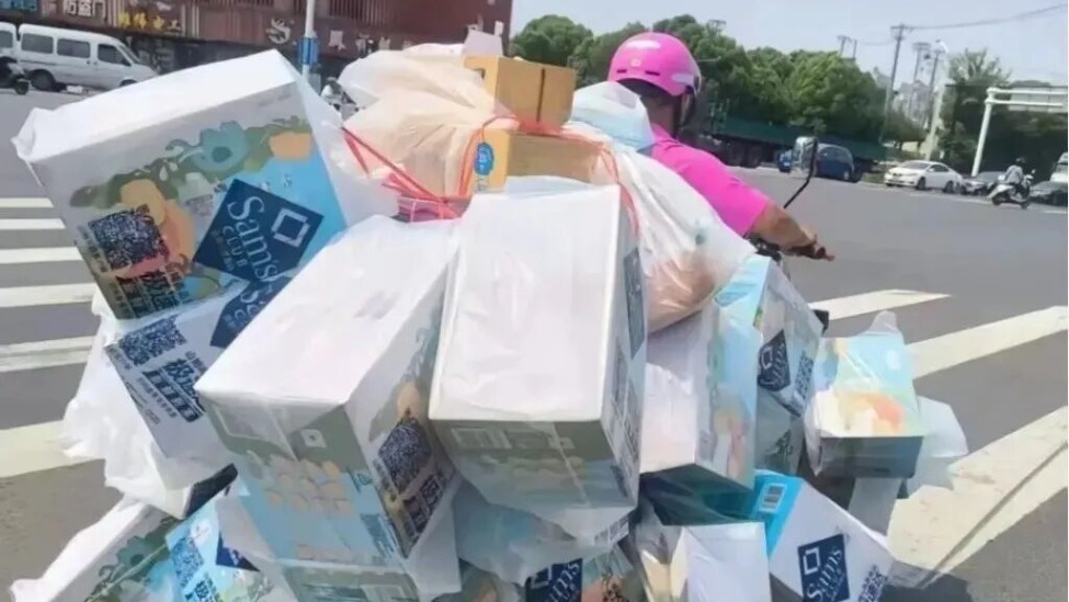 网友在社交平台发文称,山姆超市配送员货多车小,带来安全隐患。 网络图
