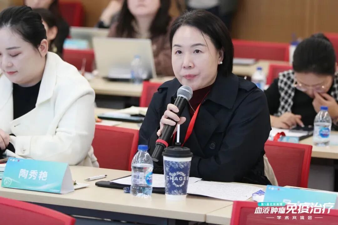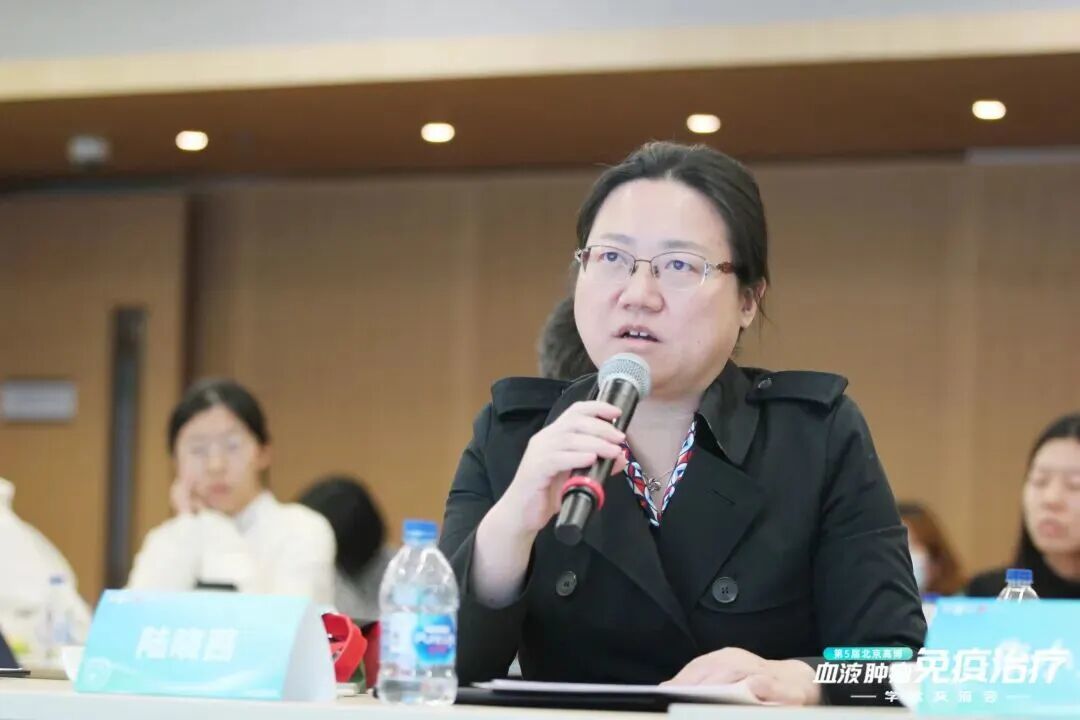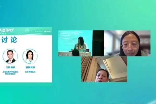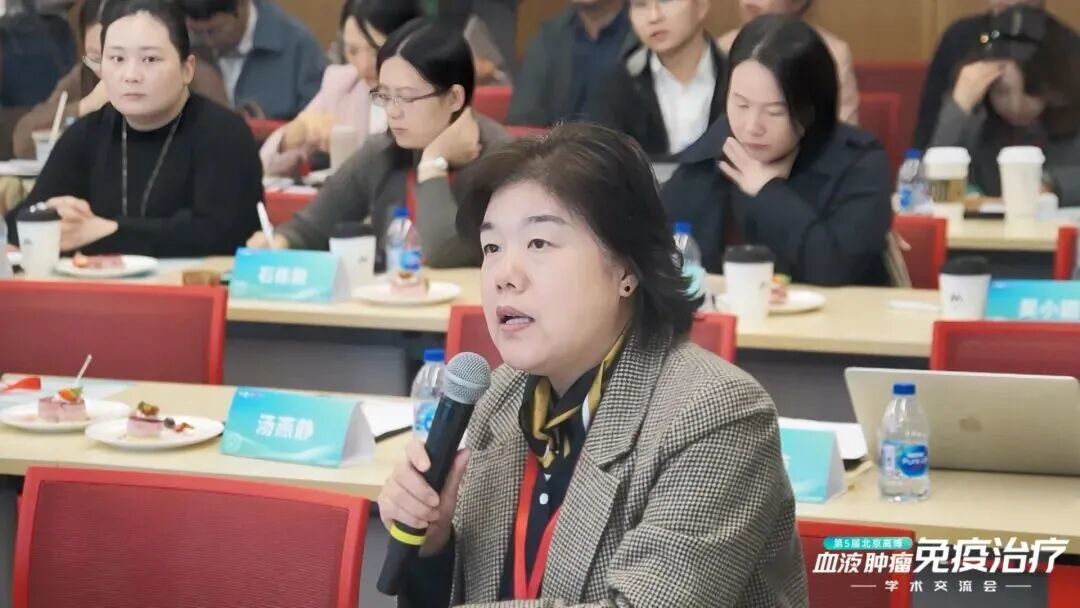 潘静主任主持本场主题报告,上海交通大学医学院附属仁济医院侯健教授、中国医学科学院血液病医院(中国医学科学院血液学研究所)徐燕教授、北京高博医院胡凯主任参与本场主题讨论。