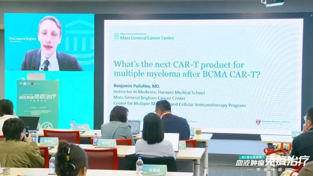 美国麻省总医院Benjamin Puliafito博士以题为“What’s the next CAR-T product for MM after BCMA CAR-T”的主题报告正式拉开本次会议的帷幕,从国际前沿视角出发,系统回顾了当下BCMA靶点CAR-T在多发性骨髓瘤中的临床进展与应用经验,全面解读了BCMA CAR-T的耐药关键机制,并重点阐述了BCMA之后新一代靶点的研发方向与战略布局。他同时剖析了在多靶点协同构建、细胞功能优化及毒副反应管理等方面的创新突破,展示了其团队在产品迭代与机制探索上的卓越成果,为多发性骨髓瘤免疫治疗的持续创新与未来探索提供了深刻启迪与前行力量。