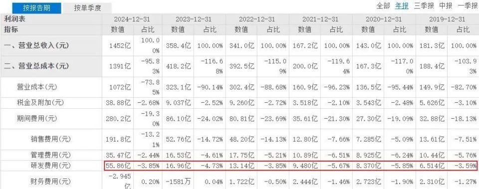 但不难看出,从2019年的不足7亿元的研发投入,到如今年超50亿元的研发费用,赛力斯保持了很强劲的增长速度。