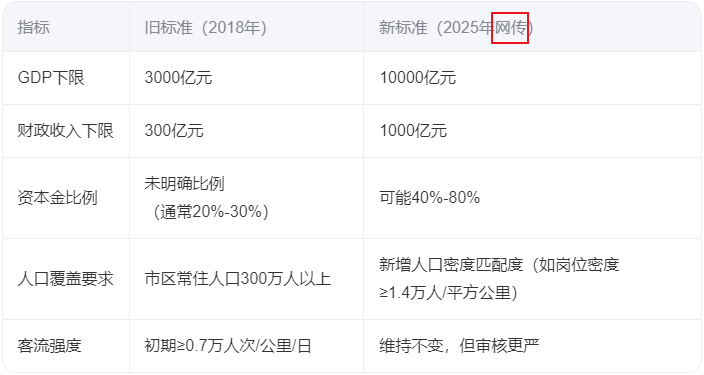 此外,还有传言,GDP、财政收入等门槛也大幅提高。GDP需要过万亿,财政收入需要过千亿。