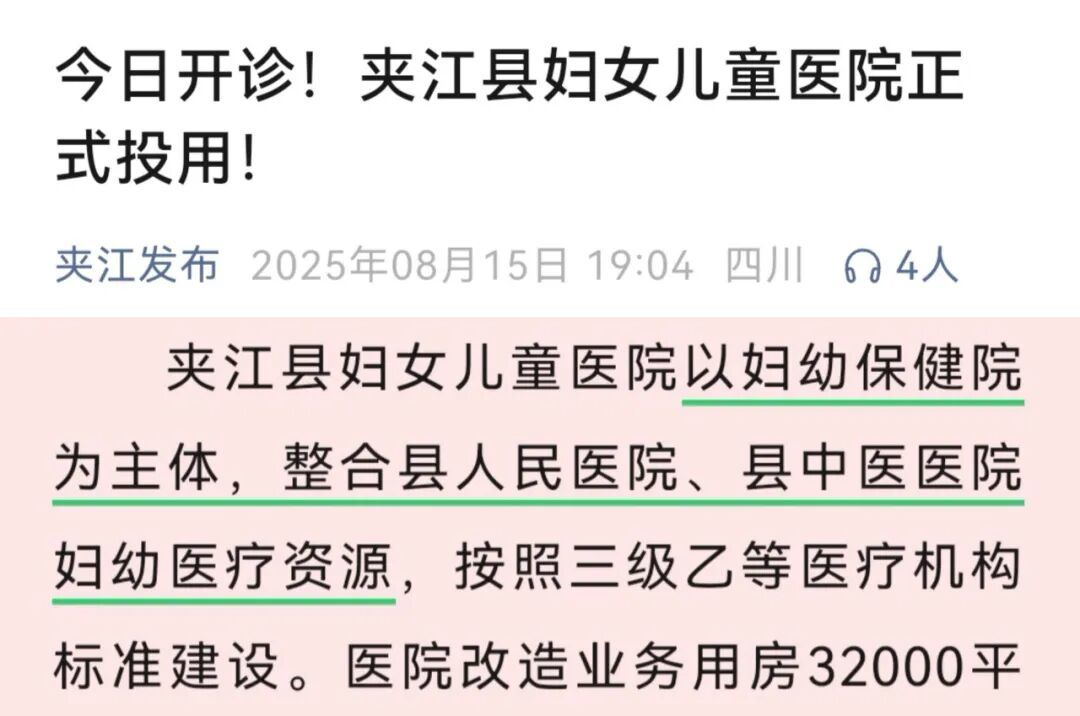 除了开头提到的石首市,今年 4 月,四川崇州市卫生健康局也曾发文表示:对全市助产服务机构产儿科资源进行了优化整合,整合后,市妇幼保健院将集中全市的医疗资源。[8]