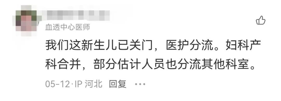 「医院不可能白养着我们,给定了指标的,去年我们科的分娩量刚刚达到及格线 100,今年年中一共才二十多个,7 月初医院就宣布要关停我们妇产科了。」