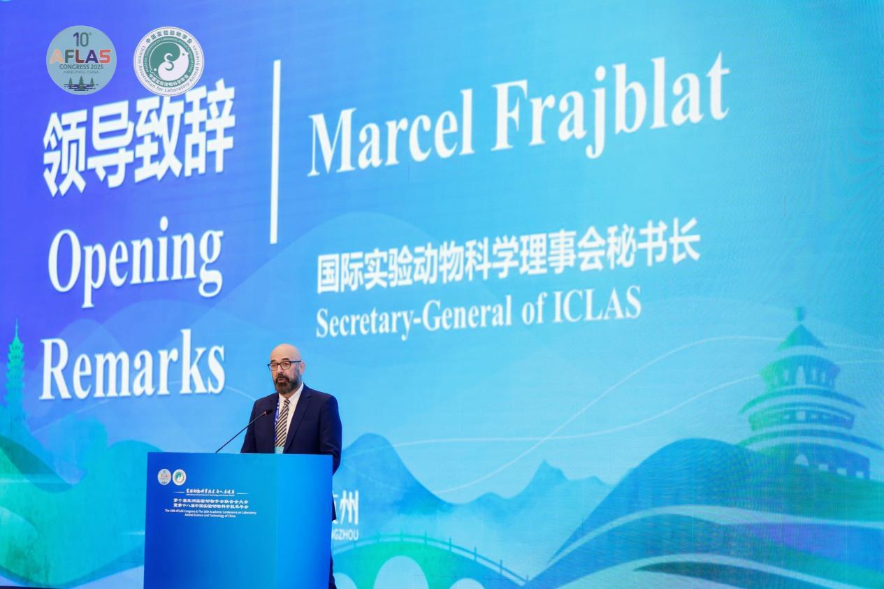国际实验动物科学理事会秘书长Marcel Frajblat教授致辞