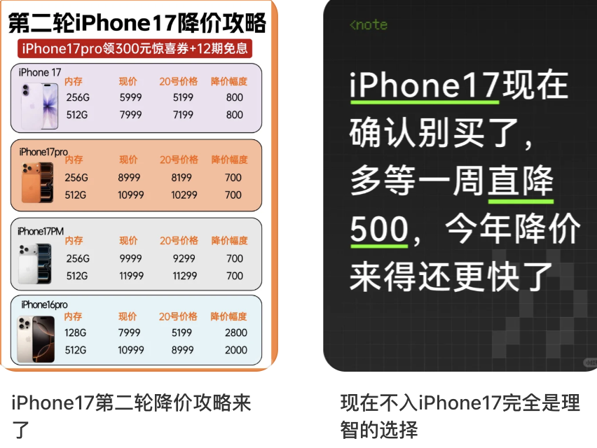 9月19日,iPhone17系列发售当天,“双十一如何用4999拿下iPhone17”的互联网教程就已经开课了。