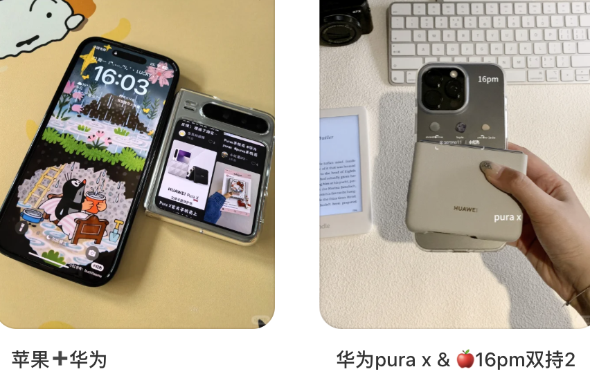 打开社交媒体,起售价7799的华为pura x小折叠,几乎成为某种标配的苹果备用机。