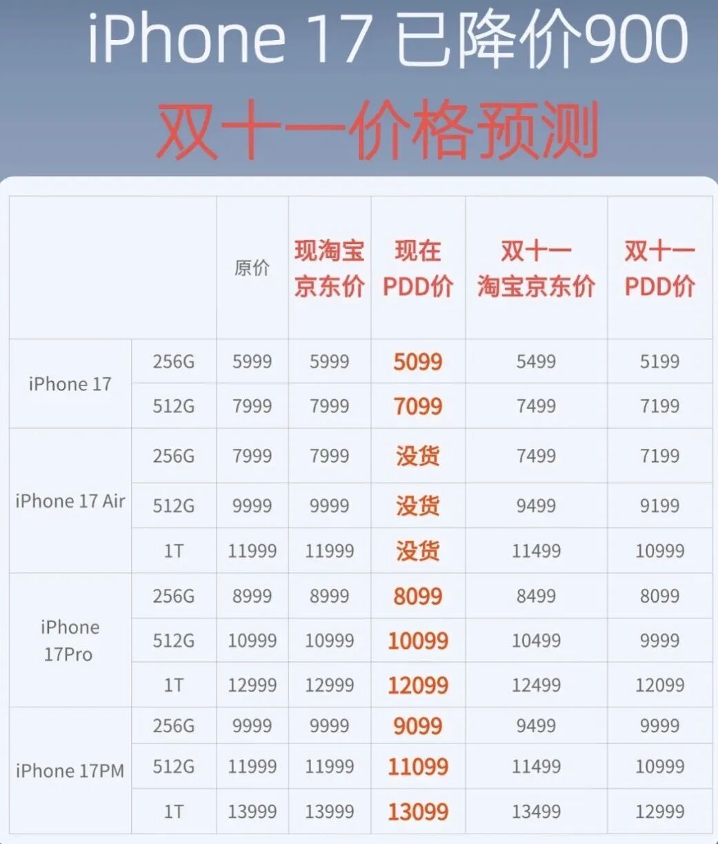 越临近双十一,iPhone17最低价的预测就越具体。