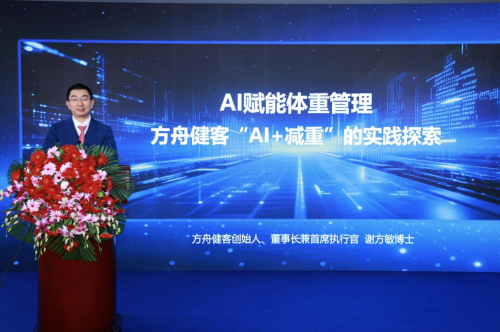 研讨会上,方舟健客创始人、董事长兼首席执行官谢方敏博士分享了公司在“AI+减重”领域的探索成果。他介绍说:“减重过程高度依赖持续、个性化的行为干预,而这恰恰是AI技术最能发挥价值的环节。比如AI能够深度学习,从而为用户生成个性化的减重建议;AI还可以突破人力和时间的限制,在用户需要时及时提供提醒和鼓励,实现‘越用越懂用户’的精准管理。”