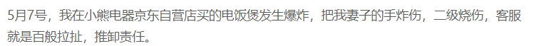 还有人家里的电饭煲发生爆炸,导致妻子手部二级烧伤。