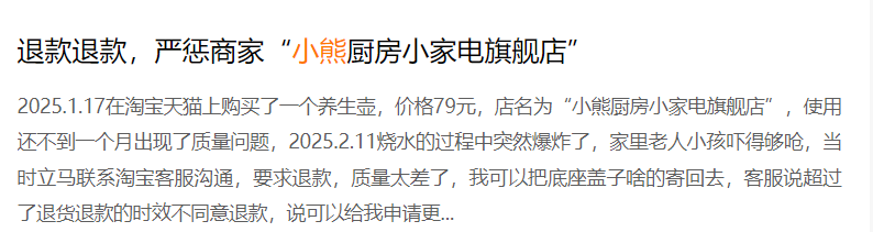 烧水壶也难逃争议,有消费者只是用它烧了一壶开水,壶身竟莫名裂开。