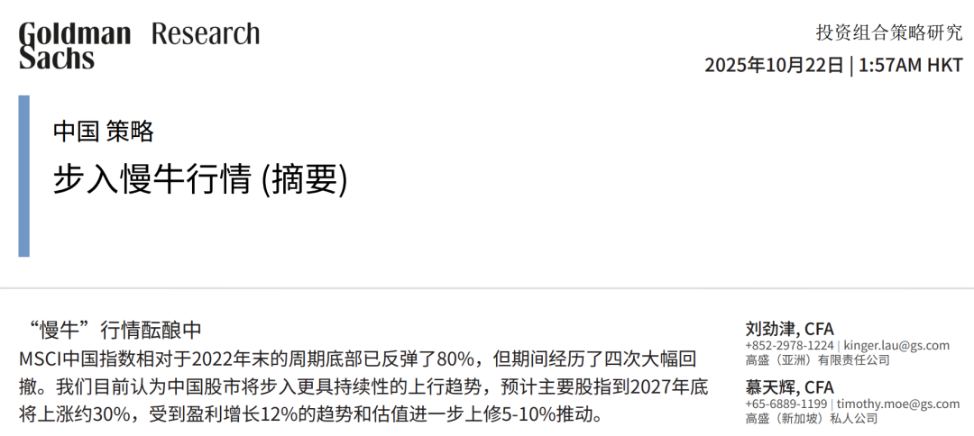 与此同时,海外投资者对中国股票兴趣渐浓,高盛、摩根大通继续看好中国股市。其中,高盛最新报告指出,中国股市将进入更为持久的“慢牛”行情!