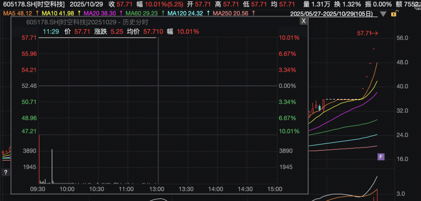 时空科技今天上午再度涨停,这是该股连续第6个交易日盘中触及涨停。