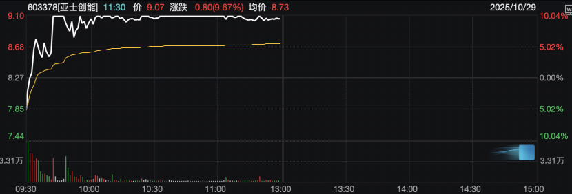 亚士创能今天上午盘中再度触及涨停,此前已连续3个交易日涨停。