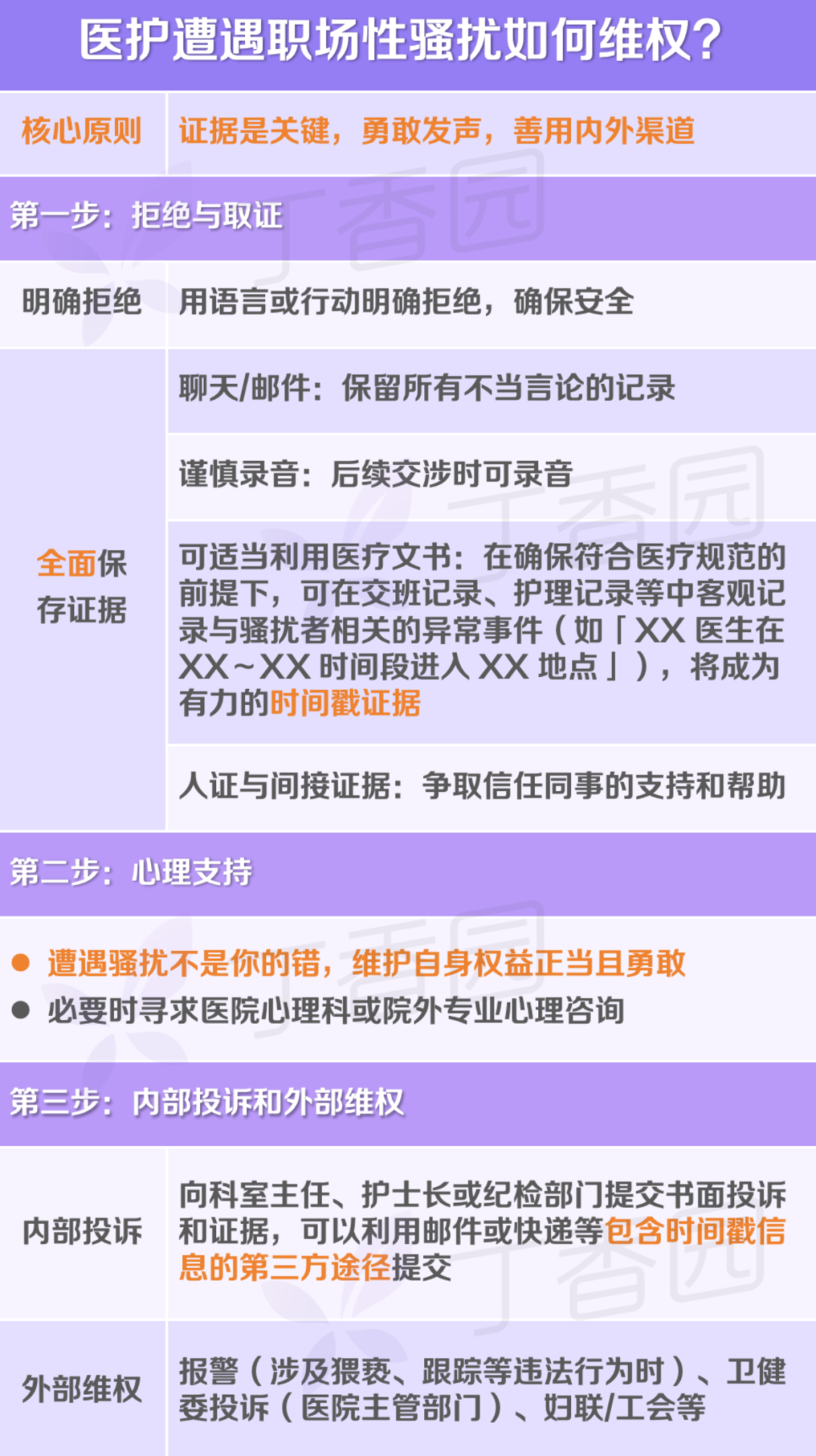 这也是中国首例以「性骚扰损害责任纠纷」独立案由胜诉案件。虽然不是医疗环境下的维权成功案例,但对于受到侵害的医护们来说,这一案例依然能够提供一些有效建议: