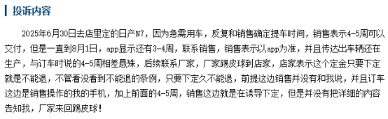 但没想到,这却是半场开香槟。急切追赶中国新能源汽车市场的日产,没能让新车的产能跟上节奏。自日产N7上市以来,不少消费者反映称新车交付不及时,且不退还定金。这直接影响了最终成交表现。