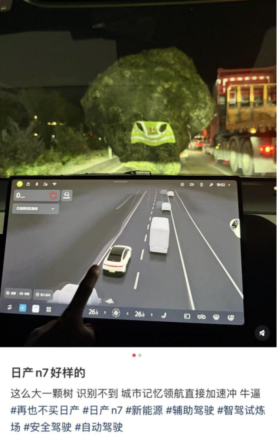 而在当前造车新势力最关键的护城河智能驾驶上,东风日产N7采用Momenta一段式端到端飞轮大模型,支持L2级智驾系统。但从社交媒体上用户的反馈来看,在识别和决策逻辑上,日产N7还有较大的提升空间。