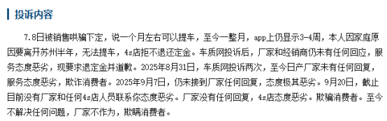 选购这辆车的部分用户,等提车到手还发现产品有诸多问题。