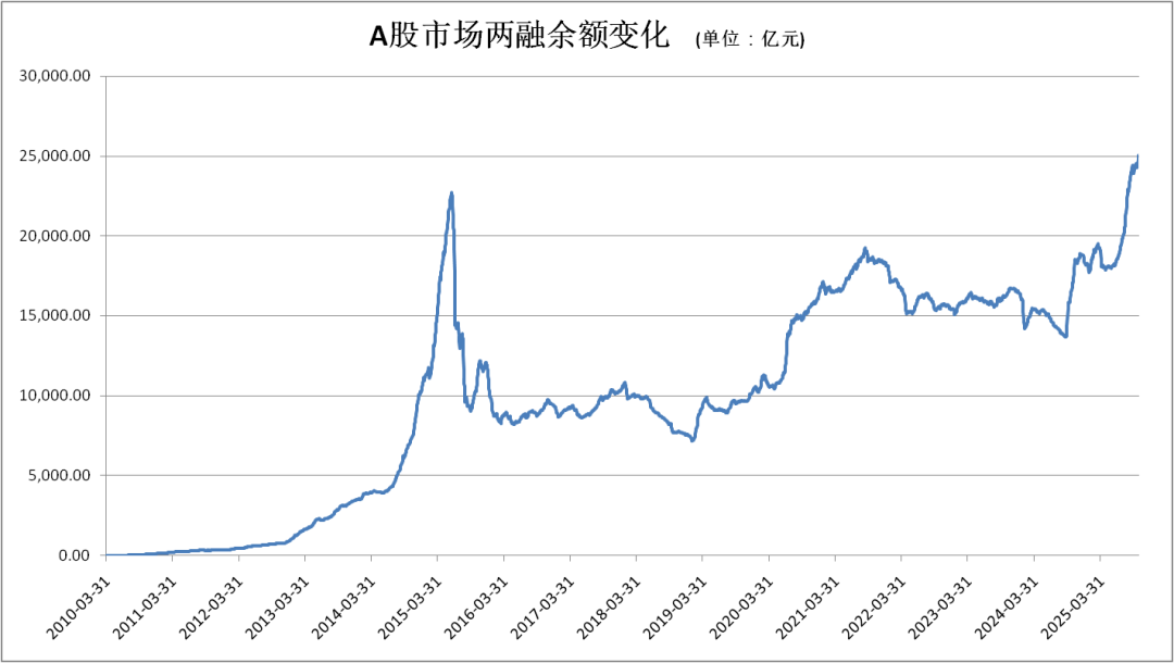 今年8月以来,两融余额增长迅速,相继突破多个关键整数关口。2025年8月5日,A股市场两融余额达20003亿元,时隔10年重返2万亿元以上;2025年8月18日,两融余额突破2.1万亿元,达到21023亿元;2025年8月26日,两融余额再上新台阶,突破2.2万亿元;2025年9月8日,两融余额突破2.3万亿元,达到23136亿元;2025年9月17日,两融余额进一步突破2.4万亿元,达到24054亿元。