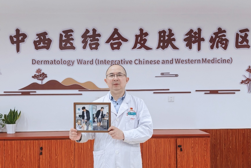 “我从医31年,第一次见到这么严重的银屑病。当时他双腿覆盖着坚硬的皮损,如同穿了一副‘树皮铠甲’。这样的皮肤让他不敢出门,已经失业两年。”胡凤鸣回忆道,“我当时建议他采用生物制剂联合中药内服及药浴治疗,经过一段时间的治疗,他的双腿皮肤基本恢复正常。”