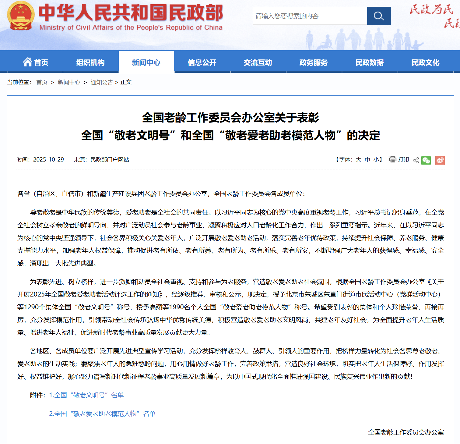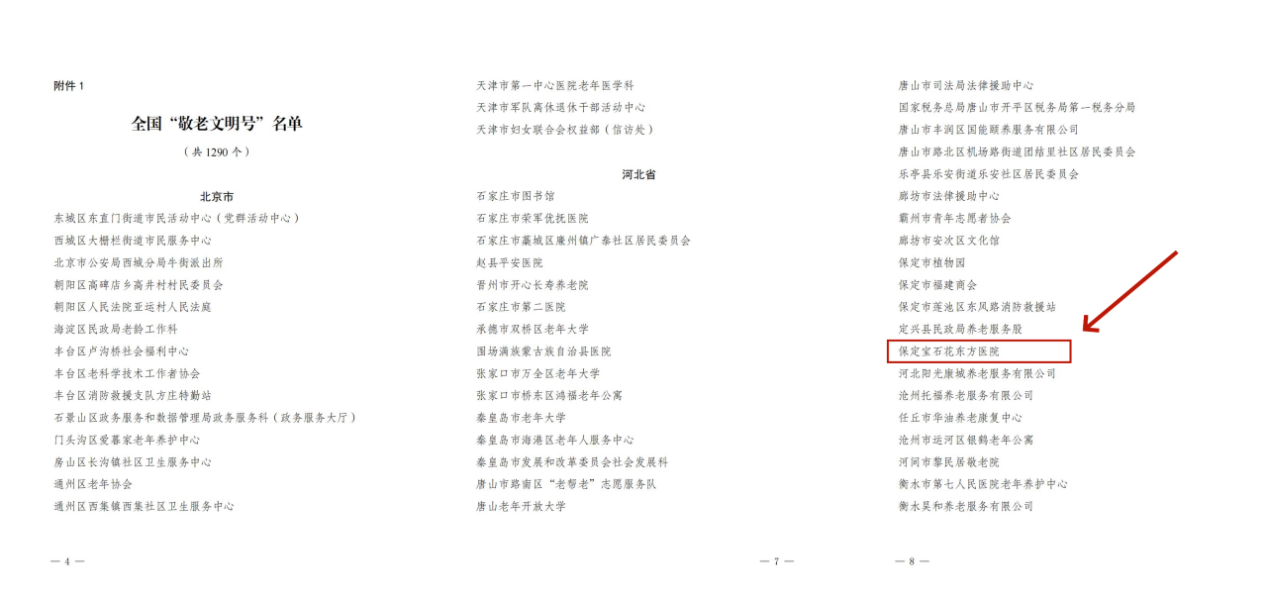 近日,民政部全国老龄工作委员会公布了2025年全国“敬老文明号”表彰名单,通用技术宝石花医疗保定宝石花东方医院成功入选,成为1290家获评单位之一。