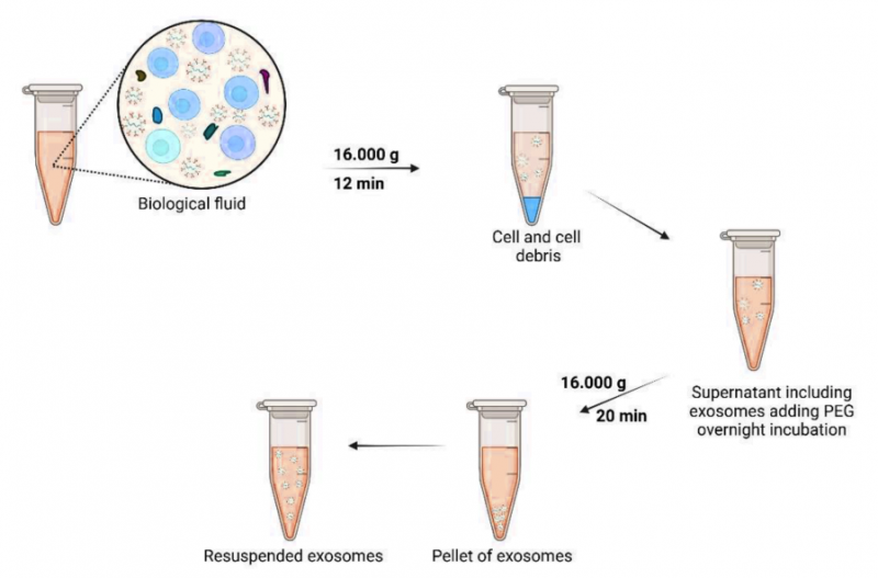 聚合物沉淀法利用聚乙二醇(PEG)等聚合物与疏水性蛋白和脂质分子结合共沉淀,通过竞争性结合水分子降低外泌体溶解度,使其在低速离心条件下从生物样本中沉淀出来。