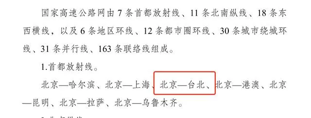 在中国印发的《国家公路网规划2022-2035》中, 北京至台北的高速公路赫然在列,被称为“首都放射线”之一,列入了2035年的高速公路布局方案。