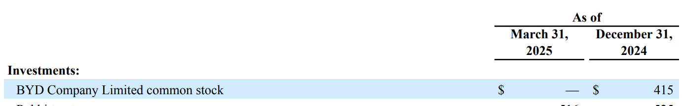 此外,财报显示,在今年第一季度末,伯克希尔·哈撒韦能源公司(BHE)持有的比亚迪股票投资一栏已经为零。