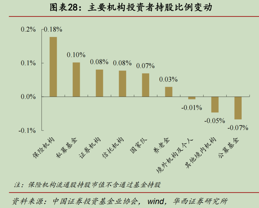 另据华西证券统计,上半年保险公司持有A股流通市值位列机构投资者之首,增长了0.18%比例变化最大。