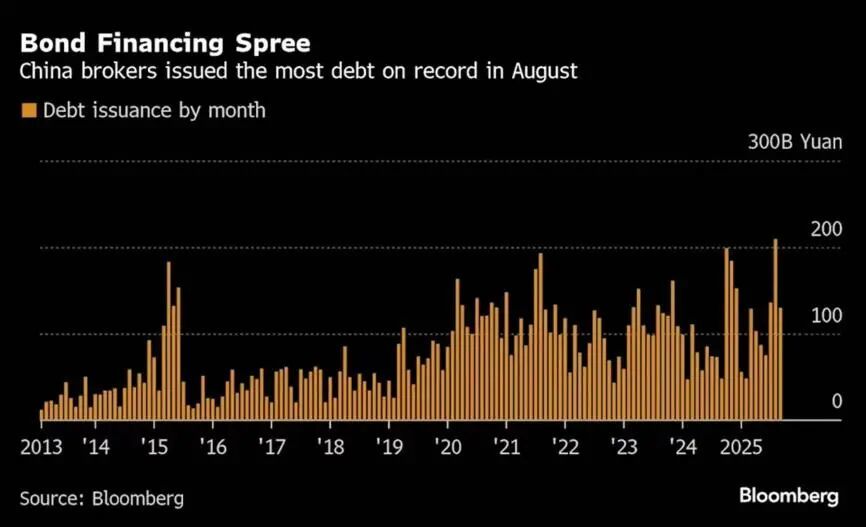 可券商的风险在慢慢浮出水面。随着股市流动性增强,券商正在光速融资。据界面等媒体数据,仅8月一个月,券商就通过发债募资近3000亿资金,创年内新高。